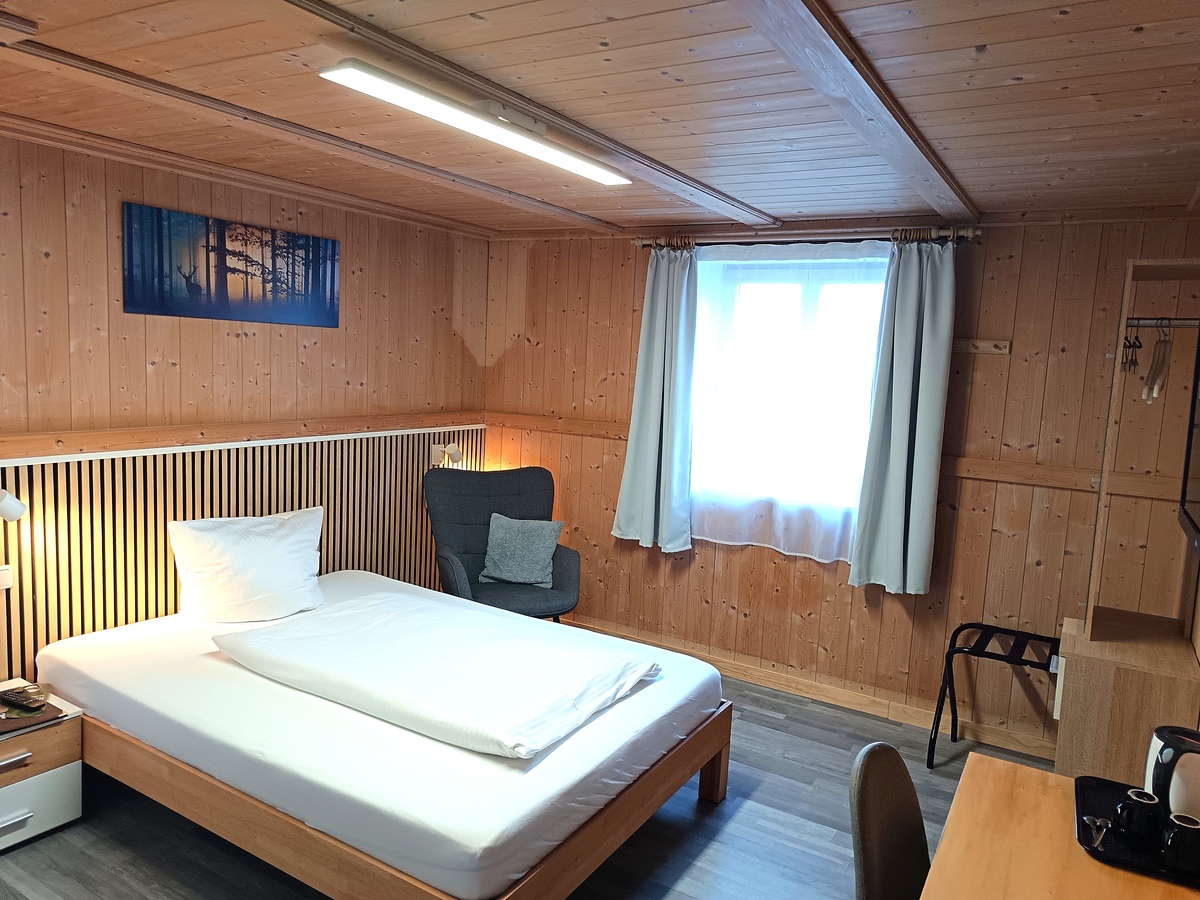 Unsere neu gestalteten, hellen Einzelzimmer verfügen jeweils über ein 100x200-cm-Bett mit offenem Fußende, einen Sitzbereich, ein kleines Badezimmer sowie einen großzügigen Balkon mit Bergblick.