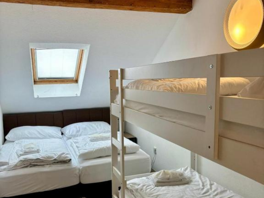 Dieses Zimmer für 4 Personen umfasst ein eigenes Bad mit einer Dusche, einem Haartrockner, Hausschuhen und kostenlosen Pflegeprodukten. Zu den weiteren Annehmlichkeiten des Zimmers gehören ein eigener Eingang, schallisolierte Wände sowie Tee- und Kaffeezubehör. Sie genießen Gartenblick. In der Wohneinheit befinden sich 2 Betten.