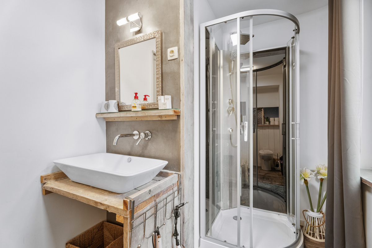 Deze kamer is gelegen op de eerste verdieping, met een groot kingsize bed, en aanpalend badkamer met douche en toilet!