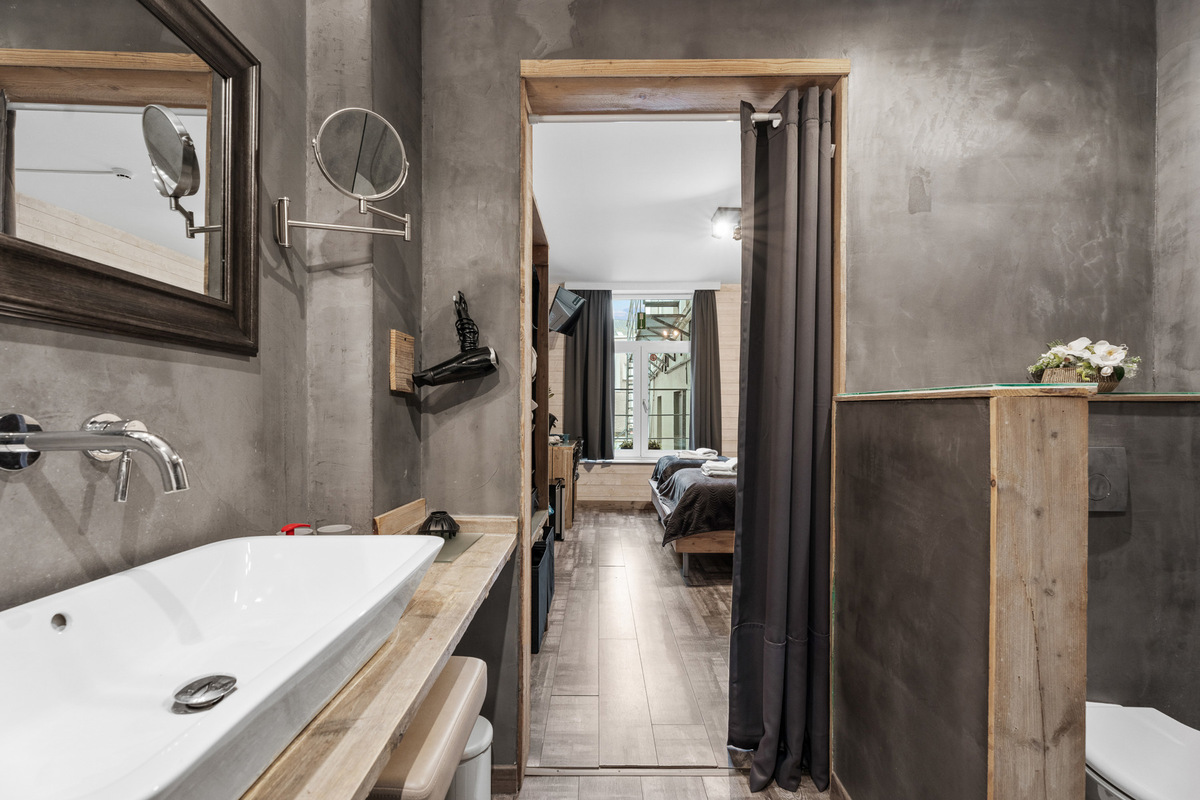 Luxekamer 8 verdieping 2 bis Heel ruime kamer met super King size bed, gelegen aan de achterkant van het gebouw, zeer rustig, Deze kamer heeft een aparte badkamer voorzien van douche en toilet