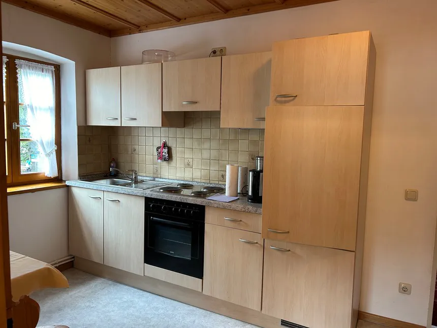 Sehr gemütliche 40 m² große Ferienwohnung für 1–2 Personen mit atemberaubendem Blick auf das Karwendelgebirge. Die Wohnung verfügt über einen großen Balkon, eine voll ausgestattete Küche (ohne Geschirrspüler).